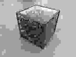 The sculpture Sea Sick Passenger Letterbox (2016) is linked to the formal language and concerns of its predecessor Sea Sick Passenger (2014), a large ‘screen’ made of felt presenting a cut-out text lying on the floor. While the text on the felt screen is only readable in parts by looking down as you walk around it, Sea Sick Passenger Letterbox compresses the actual cut-out felt letters in a sealed glass container – similar to a blackbox its content is encrypted, yet seemingly accessible through the transparent glass. Language is decomposed in this bottled message, a translation of sorts, opening up to new possible meanings. As Ben Borthwick put it, “The reader becomes the editor, sequencing these fragments into new narratives.”