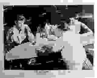 ×Lisa Herfeldt’s editions are collages that consist of two elements: the black and white photographs are stills that were created and used for press kits of new cinema films. Residuals, such as staple pinholes, indicate that they were possibly also hung up as lobby cards. Herfeldt combines the stills with fabric objects. These are based on her textile sculptures, which otherwise intervene in three-dimensional space. In these collages, the tongues of fabric intrude the depicted film scene and thus manipulate the depicted action.